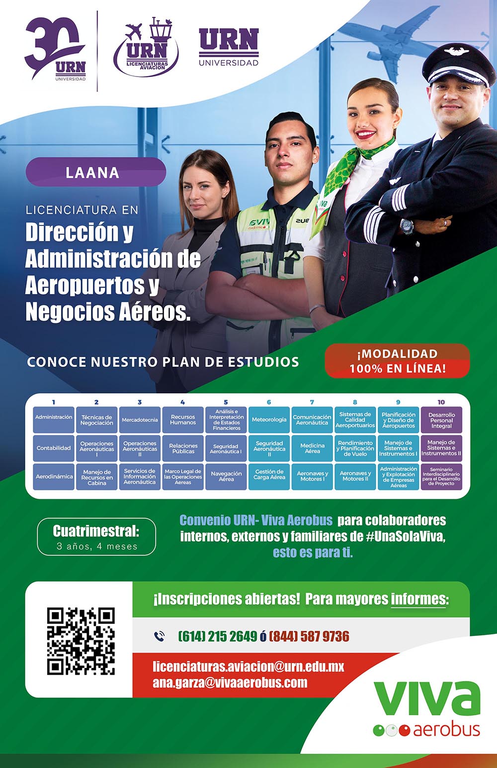 En caso de existir alguna modificación al presente Aviso de Privacidad se hará de su conocimiento en nuestro sitio de Internet. Podrá ejercer los derechos de acceso, rectificación, cancelación u oposición (derechos ARCO) al tratamiento de sus “Datos Personales”, presentando su solicitud por correo electrónico a licenciaturas.aviacion@urn.edu.mx