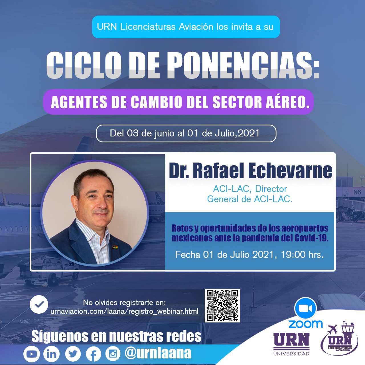 En caso de existir alguna modificación al presente Aviso de Privacidad se hará de su conocimiento en nuestro sitio de Internet. Podrá ejercer los derechos de acceso, rectificación, cancelación u oposición (derechos ARCO) al tratamiento de sus “Datos Personales”, presentando su solicitud por correo electrónico a licenciaturas.aviacion@urn.edu.mx